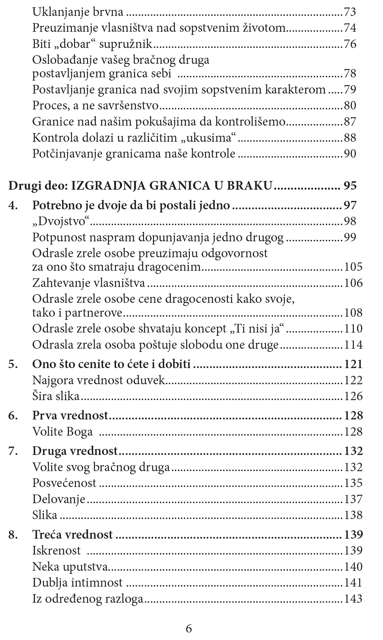 Naučite kako postavljanje zdravih granica u vašem braku može ojačati – ili čak spasiti – vaš odnos sa bračnim drugom. Postavite i održavajte lične granice poštujući granice svog partnera. Shvatite i vežbajte dva ključna sastojka uspešnog braka: slobodu i odgovornost.