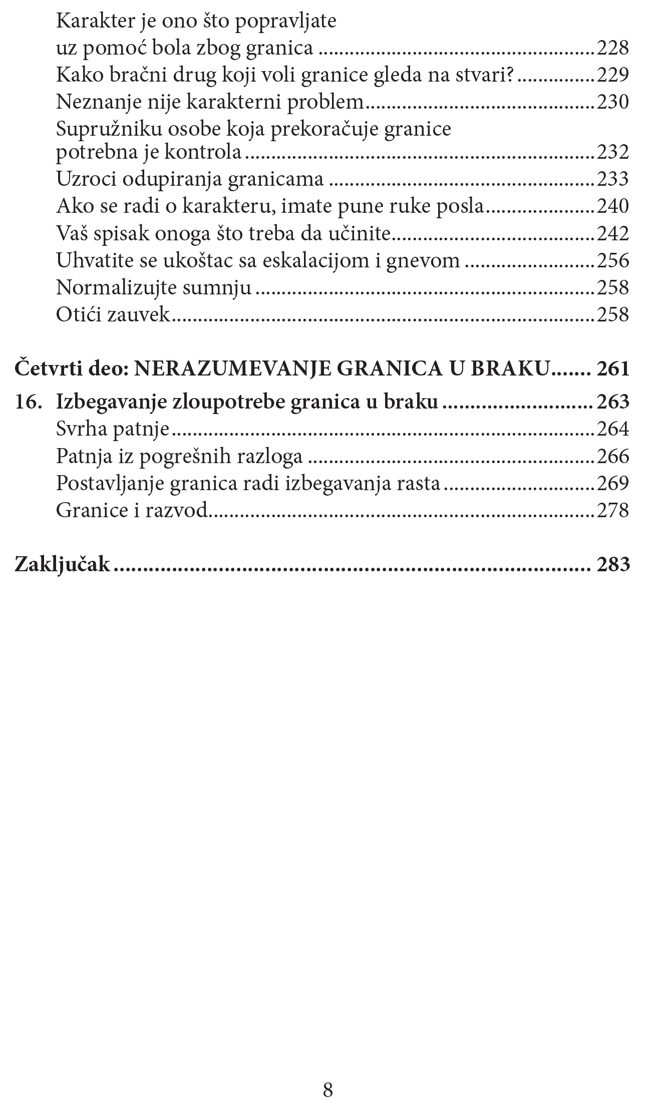 Harold je izgledao iznenađeno. Očigledno nije navikao na to da mu se ona suprotstavi. Ipak, sabrao se, izrekao kiselu šalu na račun nadmenih žena i ustao od stola da bi otišao da iskoristi svoju kartu. Dok je bio odsutan, Sara mi je rekla: „Izvini, jednostavno nisam mogla da mu popustim i ovog puta, ne u prisustvu mojih prijatelja.“ Osećao sam se jako tužno zbog Sare, shvativši da je njen odgovor mužu večeras bio samo izuzetak, a ne pravilo. Takođe sam shvatio da su njih dvoje, na jednom dubljem nivou, iako još uvek pravno povezani, emotivno bili razdvojeni. Njihova srca nisu bila međusobno protkana ljubavlju.