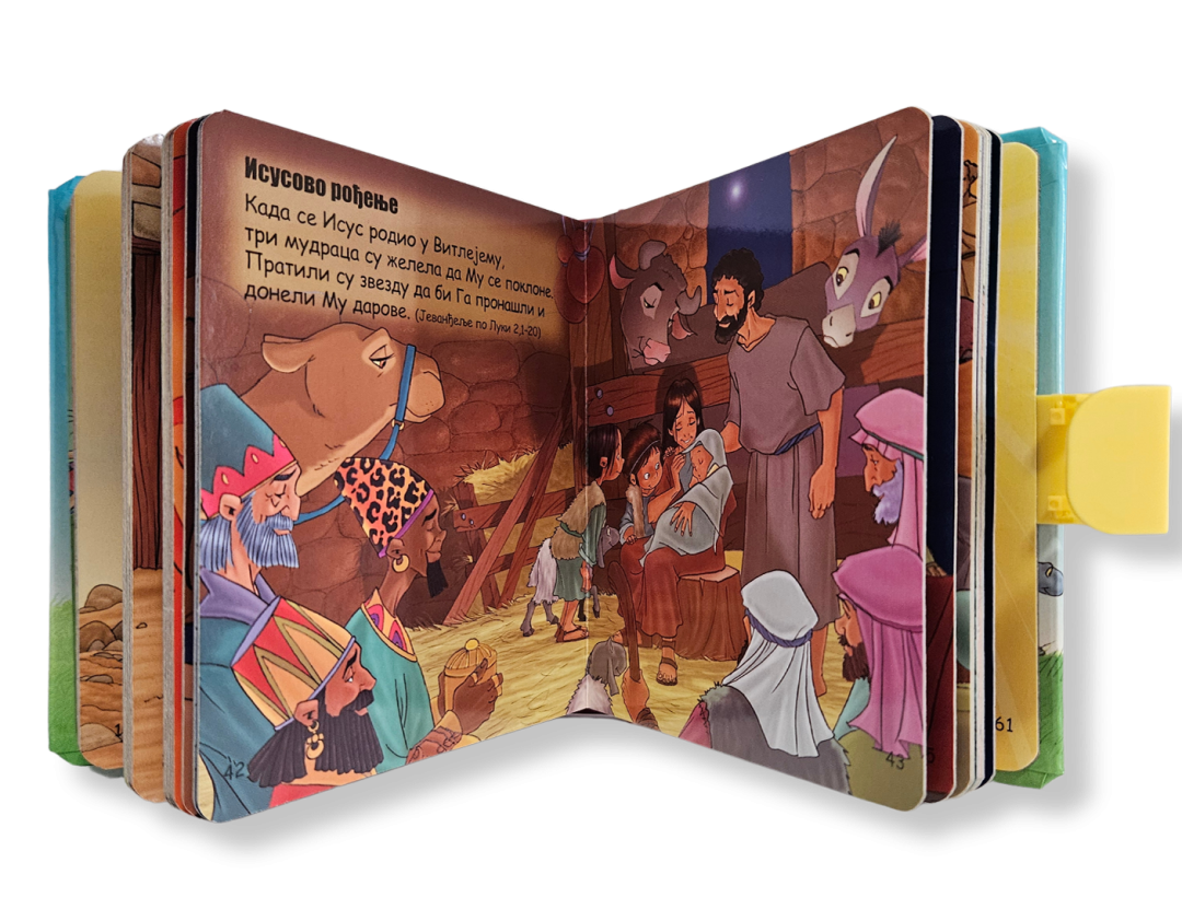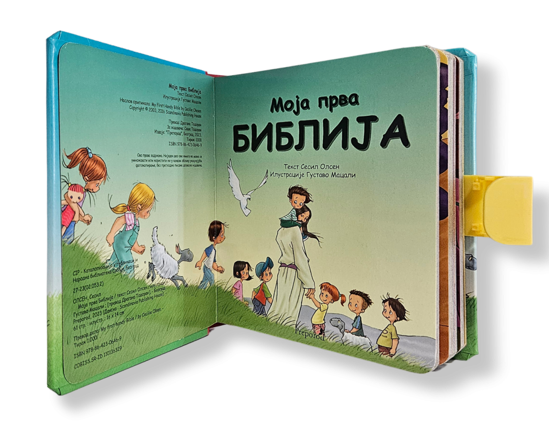 Biblija za najmlađe sa prelepim ilustracijama, prepričana jednostavnim i jasnim jezikom. Sadrži najpoznatije, verno opisane, biblijske priče. Dizajnirana kao koferče, pogodna da je deca nose svuda sa sobom.