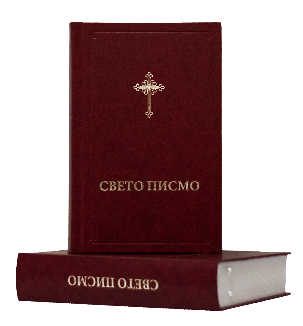 Sveto pismo, srednji format ( 20,5x14cm), bordo i crna boja, ćirilica i latinica